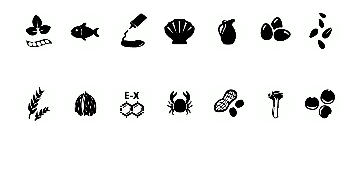Algunos de nuestros platos contienen o pueden contener trazas de alérgenos. Consulte con nuestro personal para conocer cuáles son y si hay posibilidad de adaptarlo a sus necesidades.